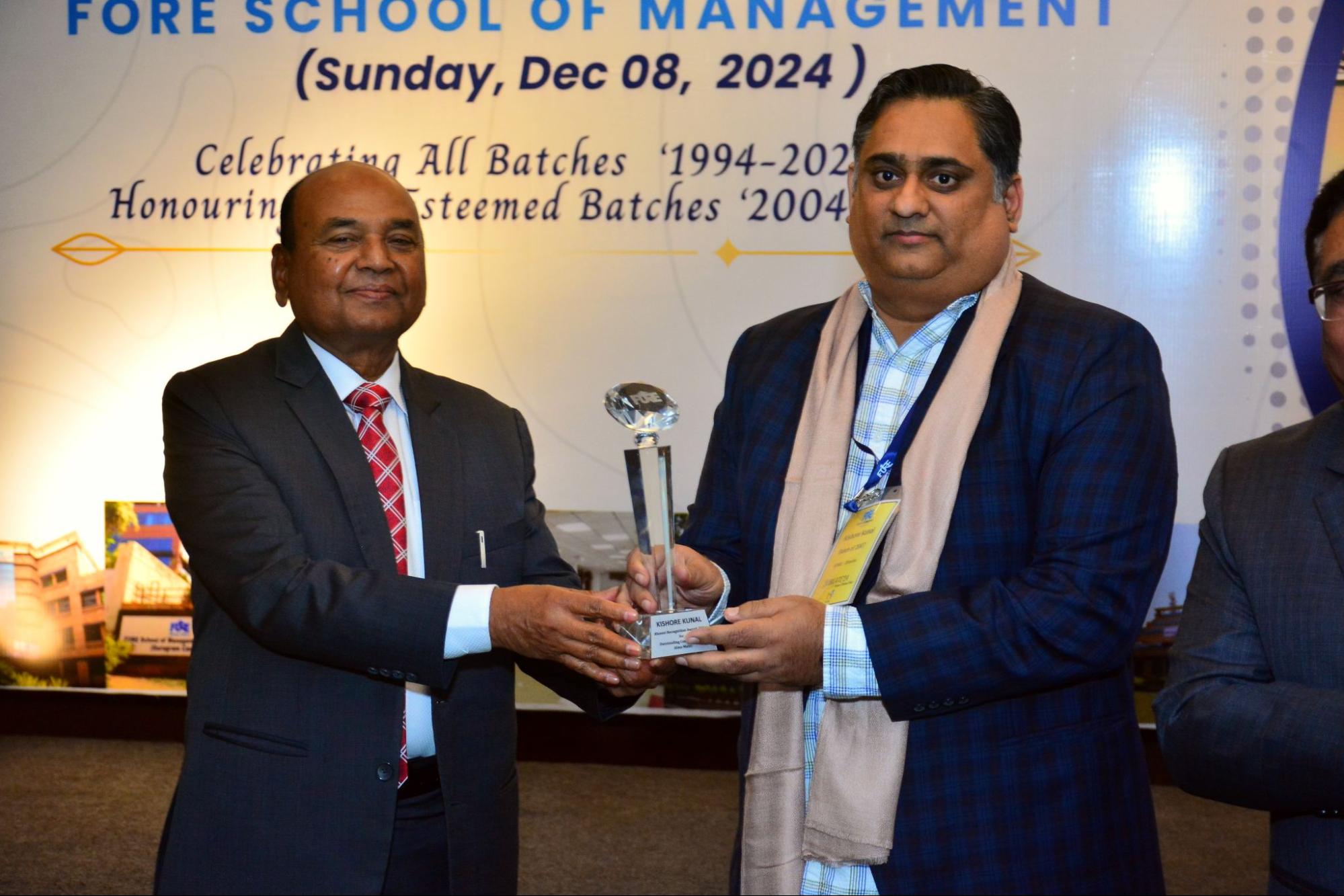 Mr.Kishore Kunal, Director at KPMG from the class of 2007 for the Alumni Recognition Award for Outstanding Contribution to Alma Mater