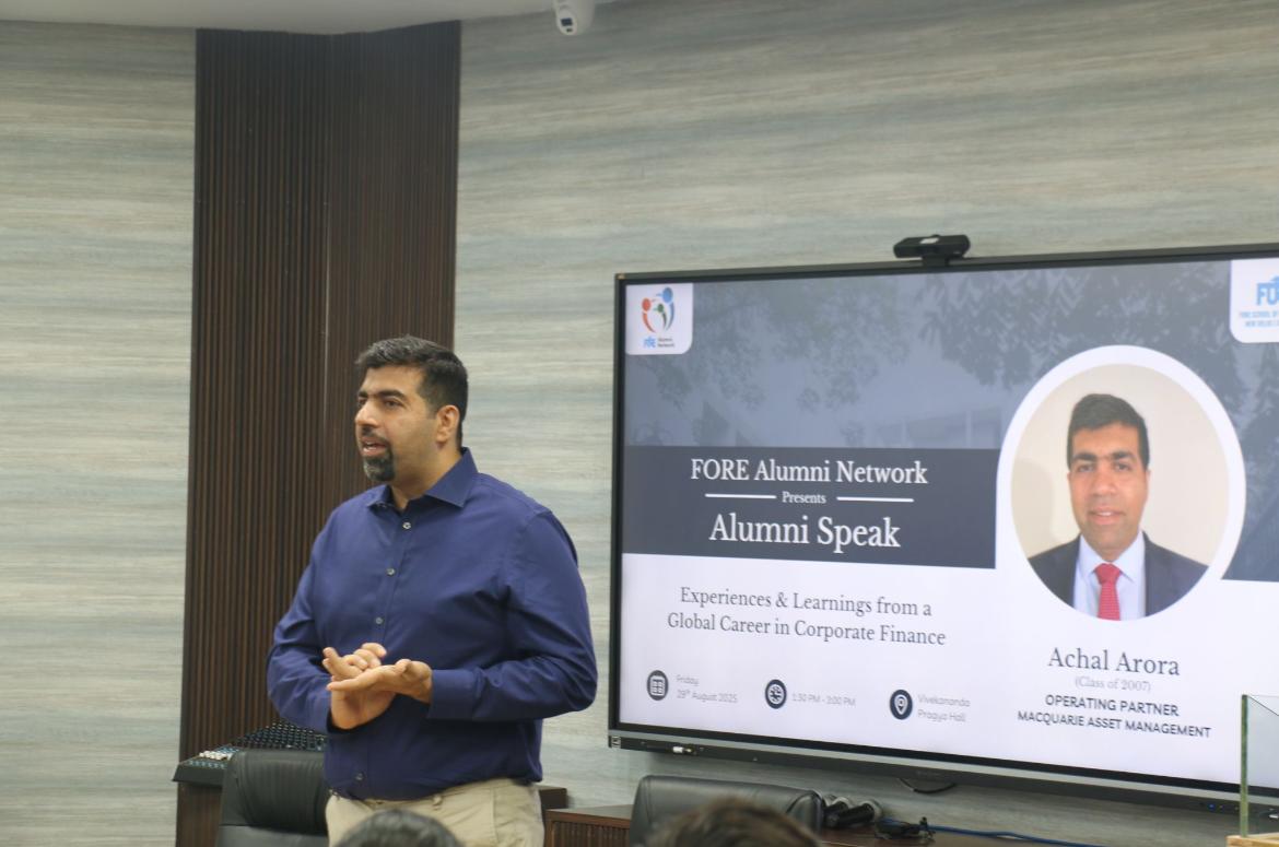The FORE Alumni Network (FAN) organized Alumni Speak 2025 on Friday, 29th August 2025, at Vivekananda Pragya Hall, Delhi. The event featured Mr. Achal Arora,
