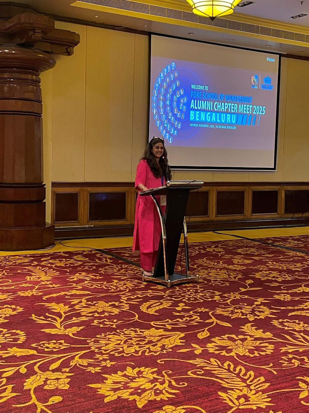Following this, Prof. Anita Tripathy Lal, Chair of the FORE Alumni Network, delivered an insightful address, highlighting the importance of these chapter meets in building and sustaining a strong alumni network. She encouraged alumni to stay actively engaged with the institution and with each other to strengthen the FORE community further.