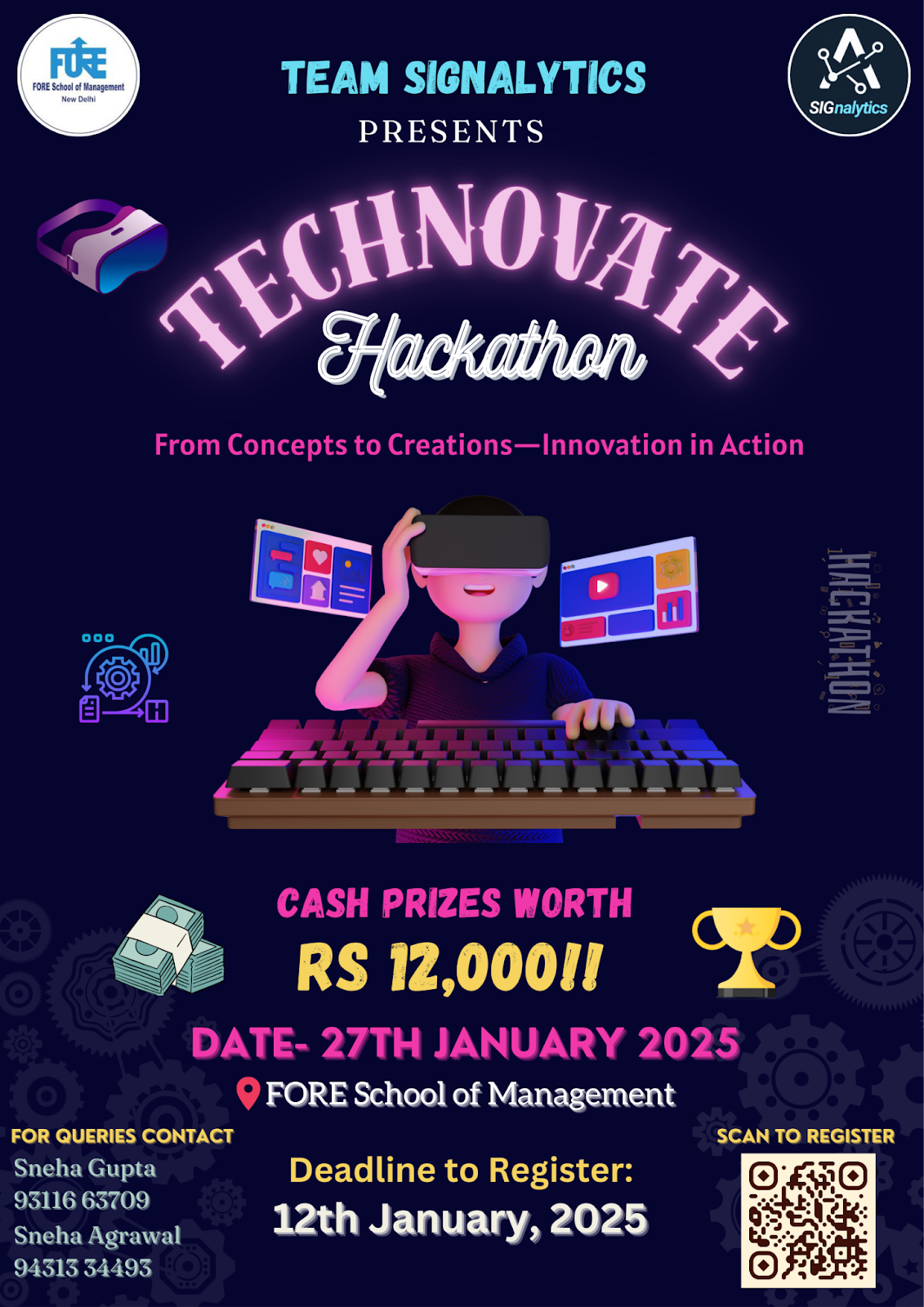 The Technovate Hackathon was held on 25th January 2025 at FORE School of Management, CR-5. During the event, teams presented their PPTs and initial prototypes, showcasing their innovative ideas and early-stage solutions. The platform enabled participants to refine their concepts, gather constructive feedback from mentors, and further strengthen their prototypes. Teams highlighted their problem-solving approach and technical execution, while also gaining valuable insights from industry experts and judges.