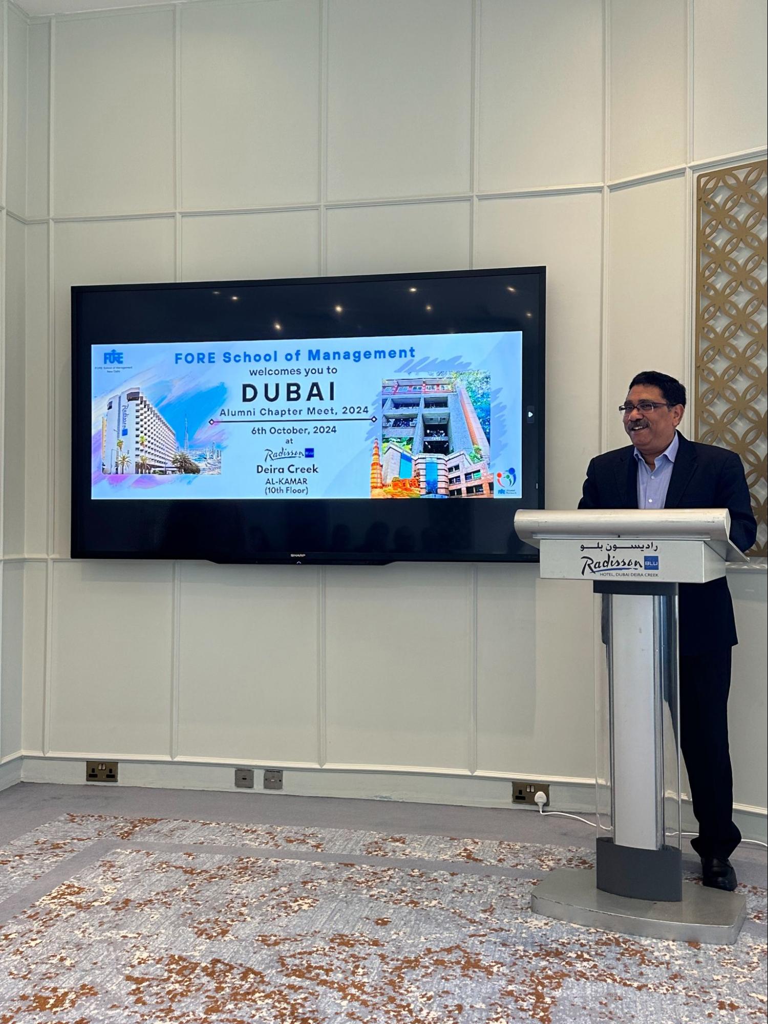 The FORE Alumni Network hosted its Dubai Chapter Meet on 6th October 2024 at the Radisson Blu, Deira Creek, Dubai. The event was a significant occasion that brought together more than 30 alumni, along with faculty members and the leadership team, to celebrate shared achievements and strengthen the FORE community in the region.