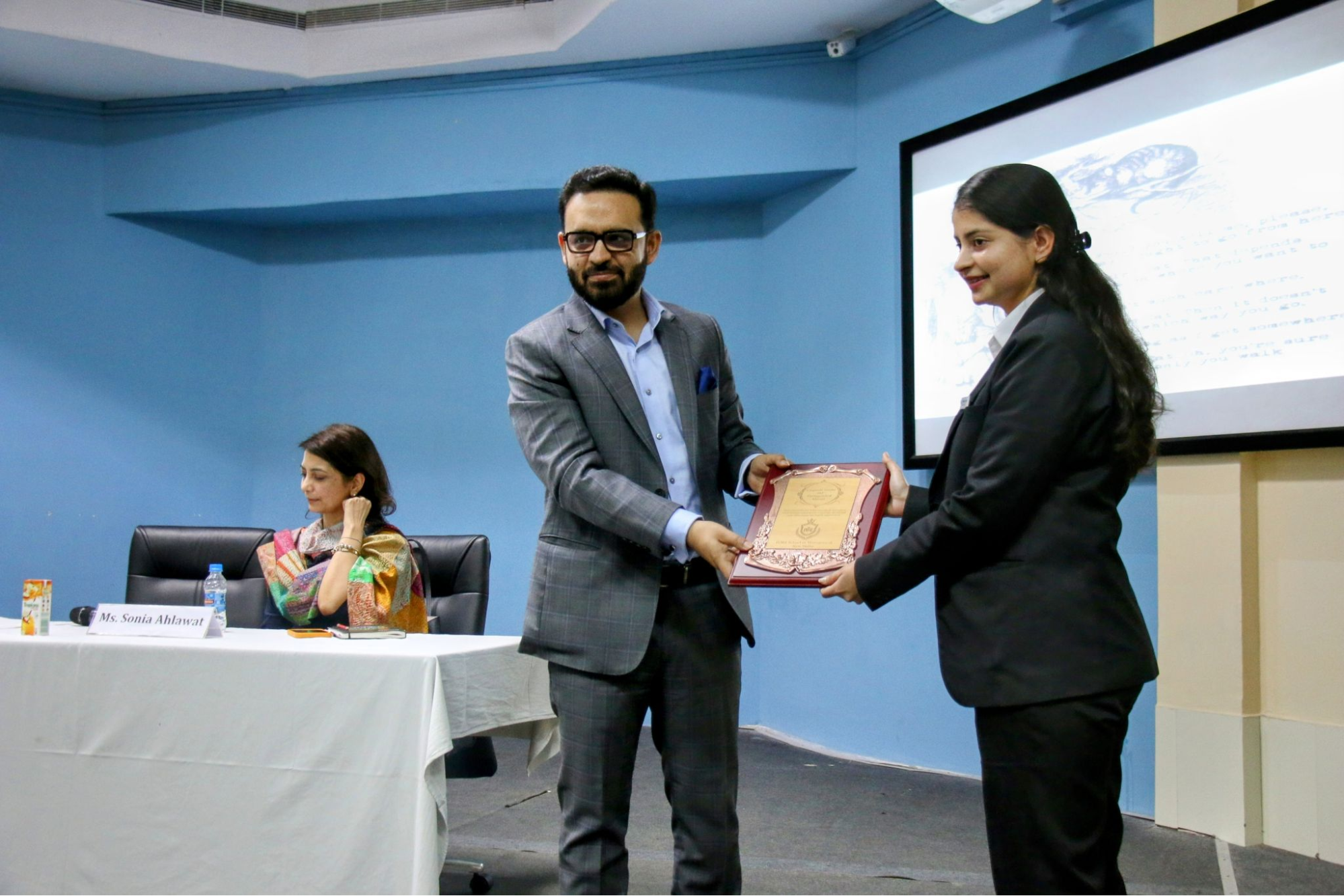 Our speaker, Sonia Ahlawat who has explored places like The United States, Iran, and Dubai for the dedication and love of her work is currently working with Deloitte as a Director. She is an alumna of batch 2001. While addressing our students she emphasized the importance of hard work, experimenting, and taking risks in life to achieve what we truly aspire for.