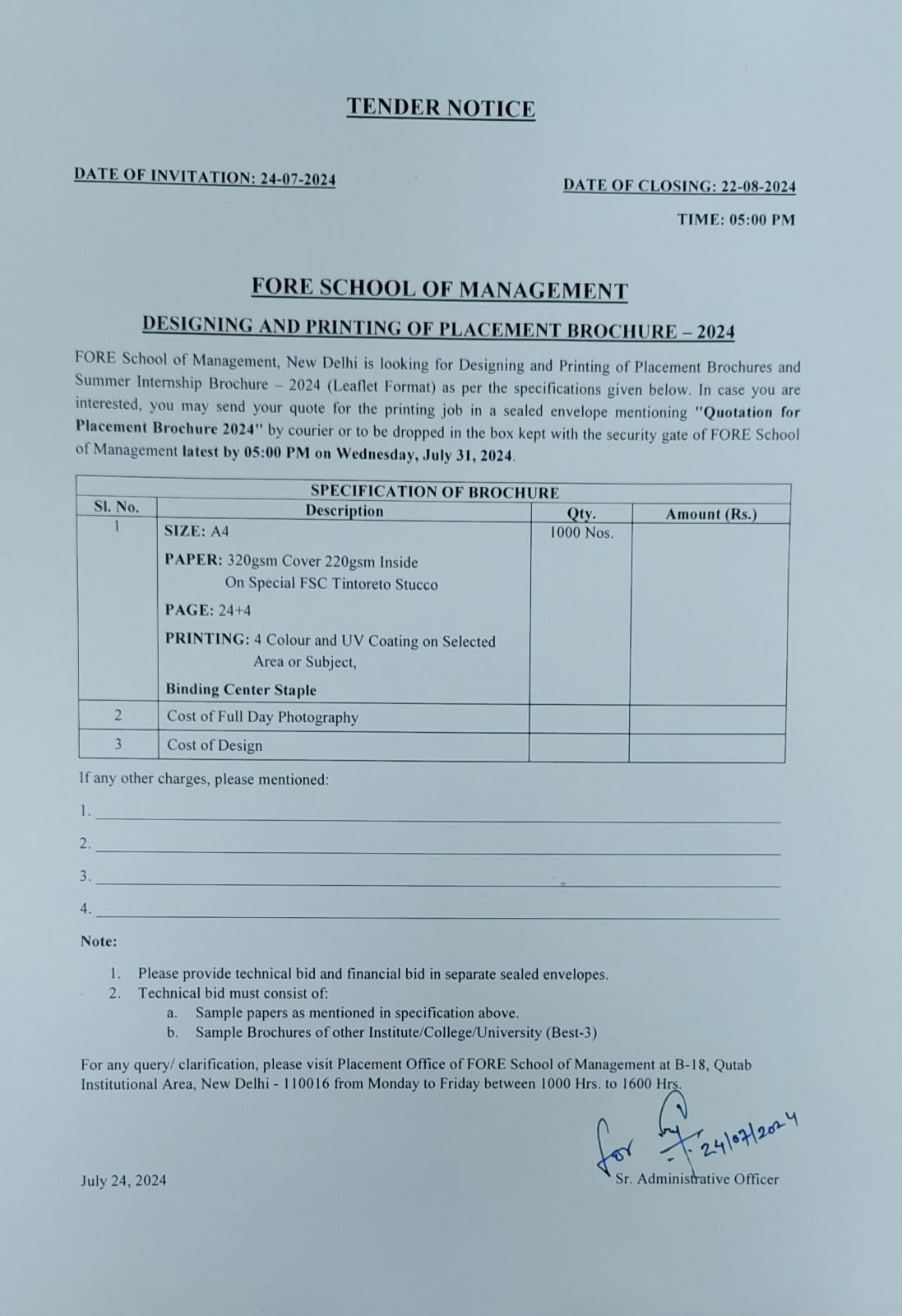 Quotation for Designing & Printing Placement Brochure 2024 (Submission Date Extended) |